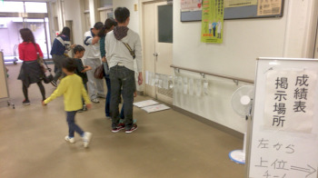 掲示した成績に見入っていました。