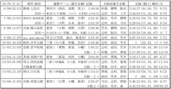 今年も大阪府チームに加えていただき,ありがとうございました。「成績は二の次,楽しむことが第一」の私には思いがけない3位で,今回もよい全日本リレーでした。